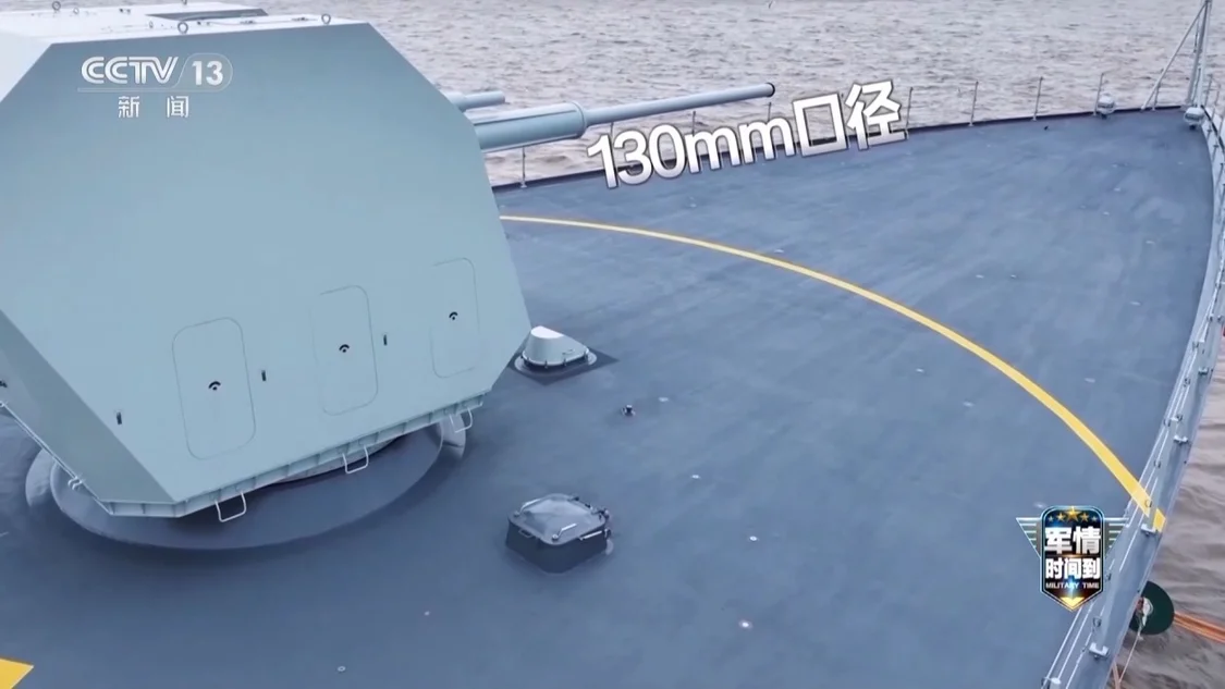 总台记者 李笑琪:这就是东莞舰的主炮了,可以看到整体比1米65的我还要高一些,像这样130毫米口径的主炮可以实现有效的毁伤打击。