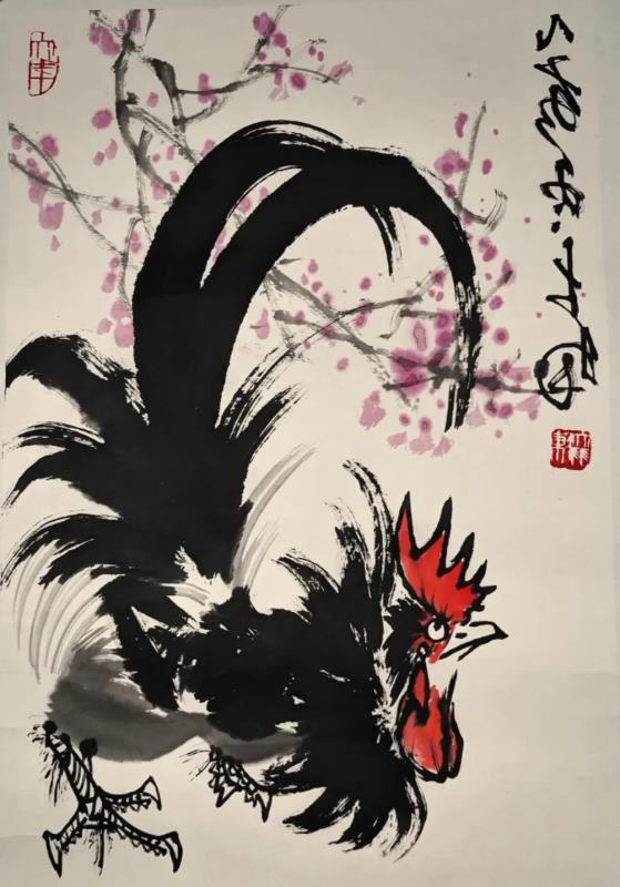 擅长大写意花鸟、书法和篆刻。